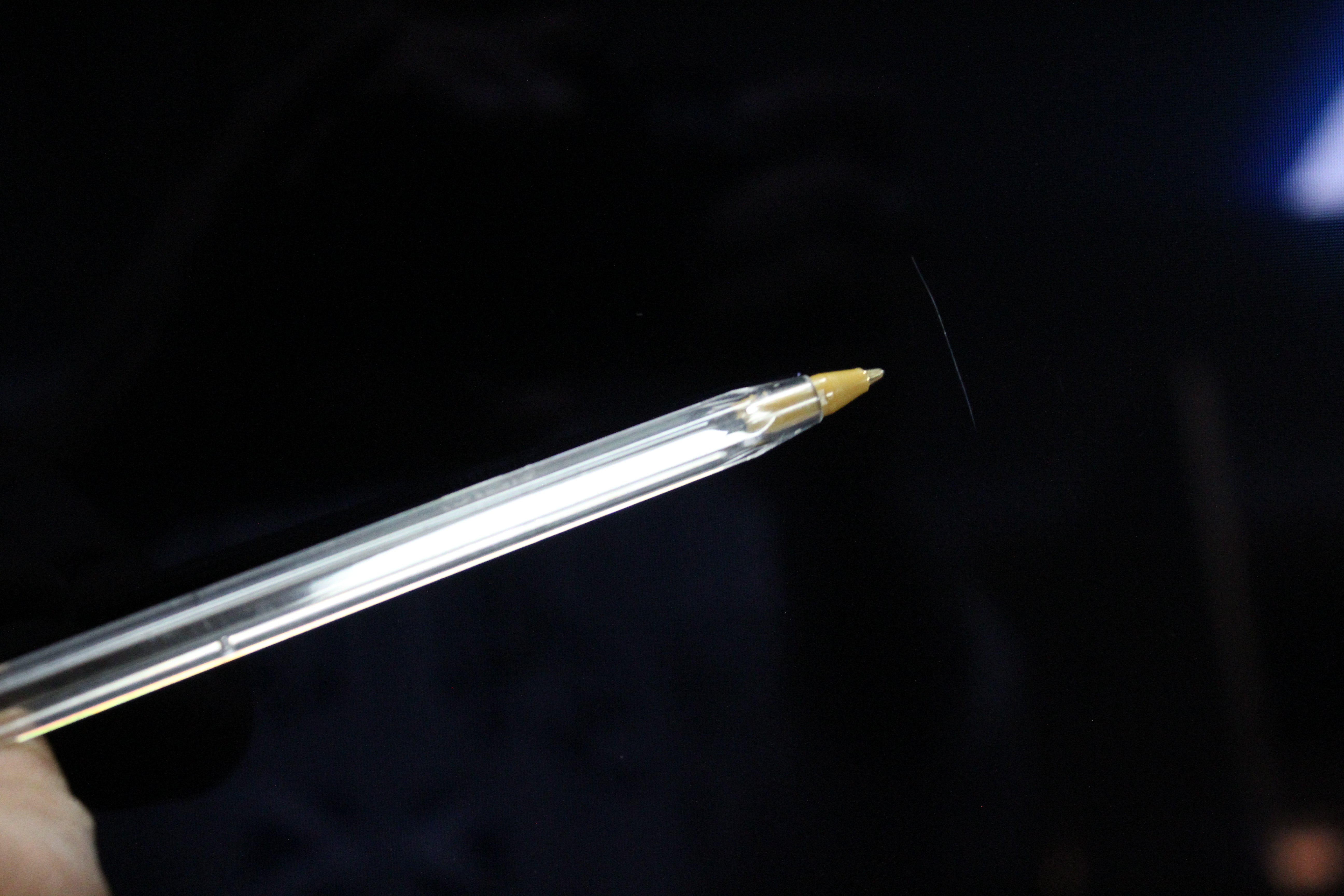 Item has a minor cosmetic mark on the screen that is blends away easily when the tv is switched on. Please see pictures for more details