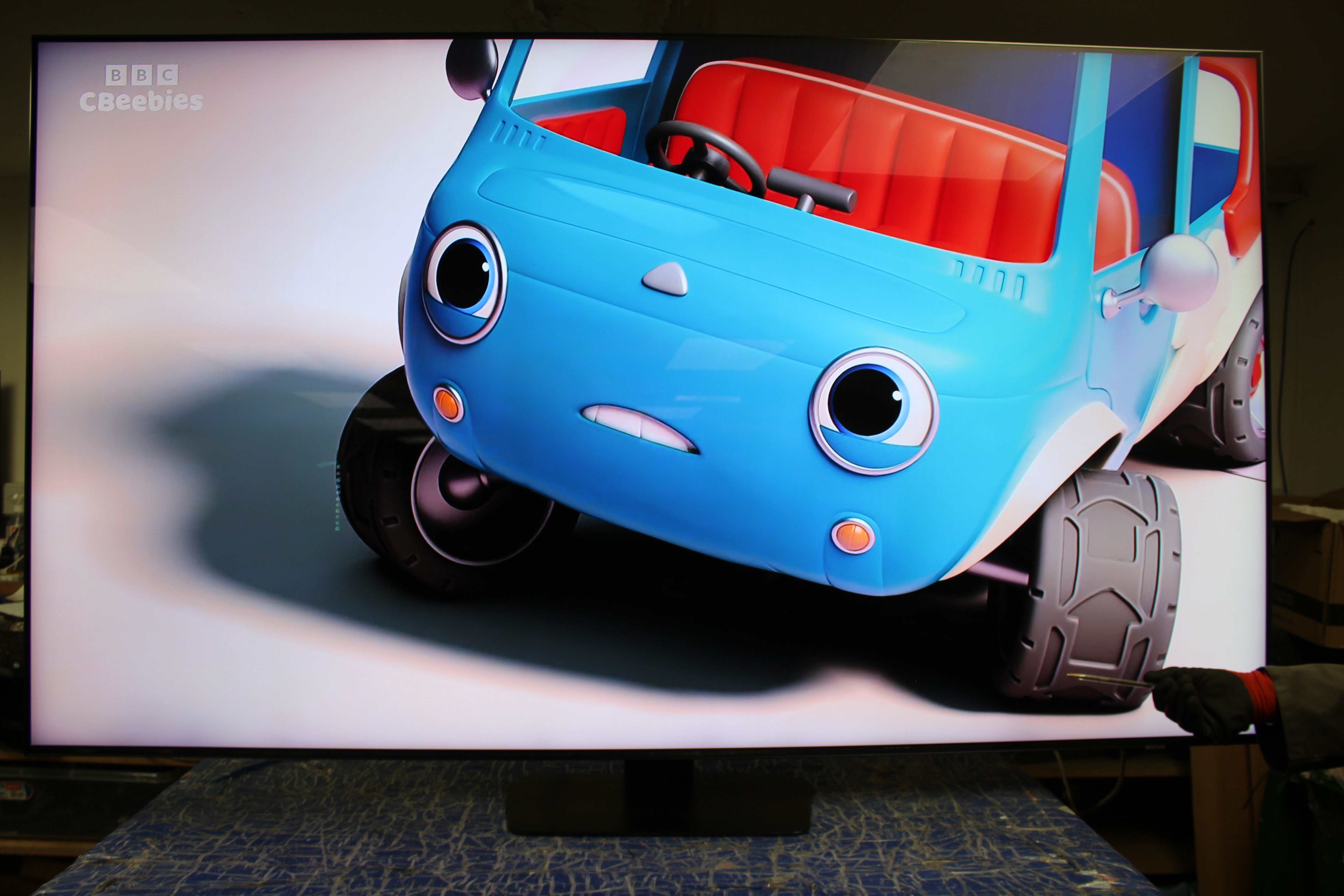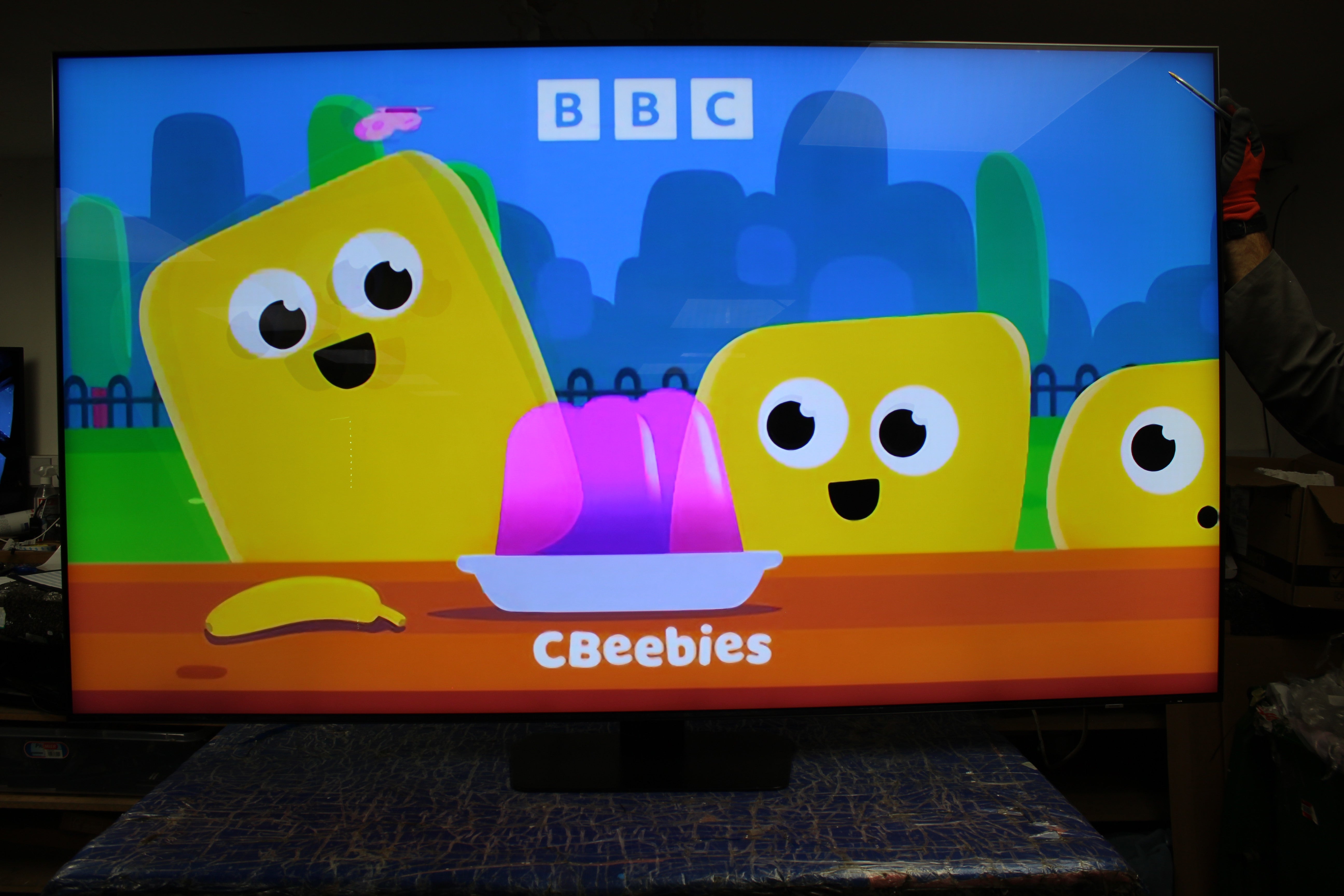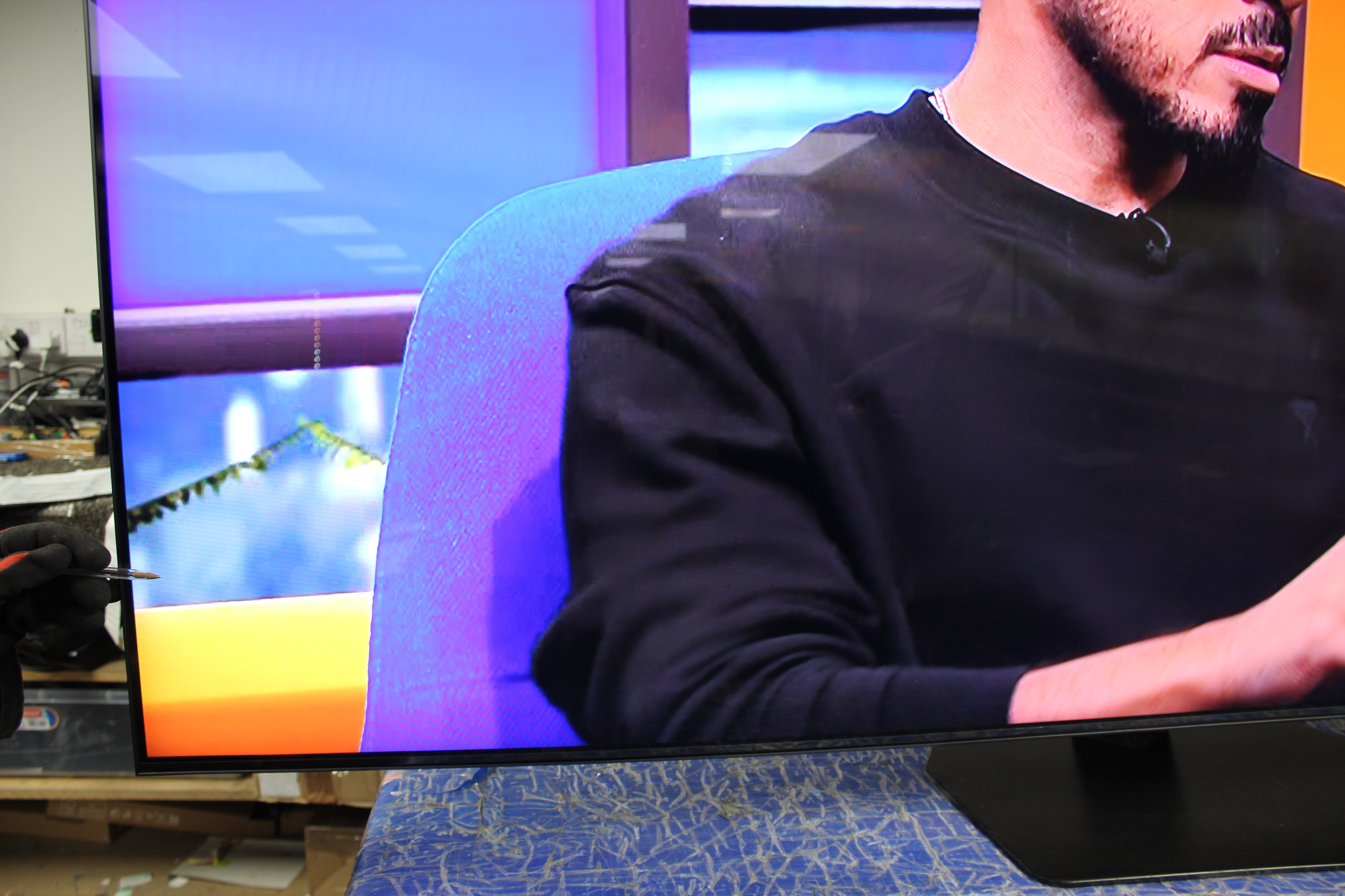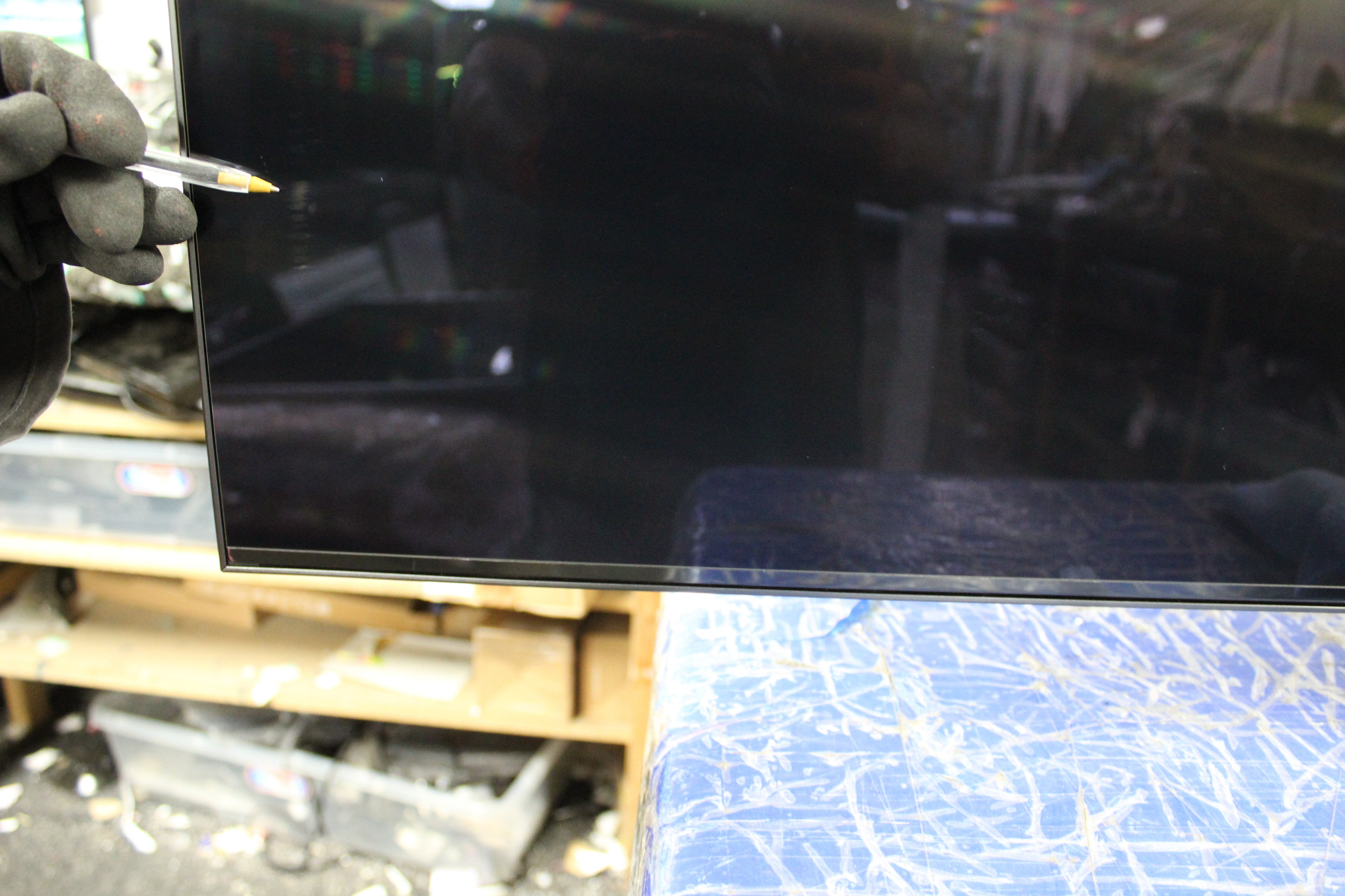 Item has a few packaging marks on the surface of the screen. These can be seen on close inspection and on darker colours but blend in to most pictures when watching, especially from normal viewing distances. Please see attached photos for a detailed look. A HUGE SAVING!